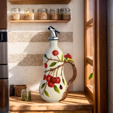 Hand-Painted Ceramic Jar with Handle for Holding and Pouring Liquids