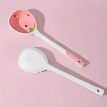 Kawaii Strawberry Ceramic Soup Spoon with Long Handle