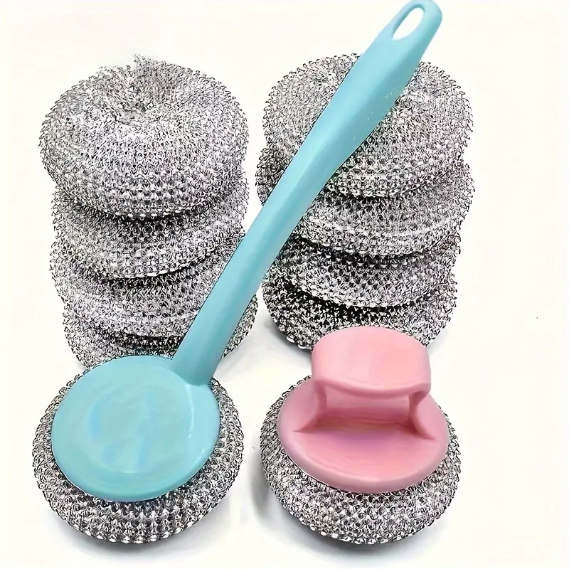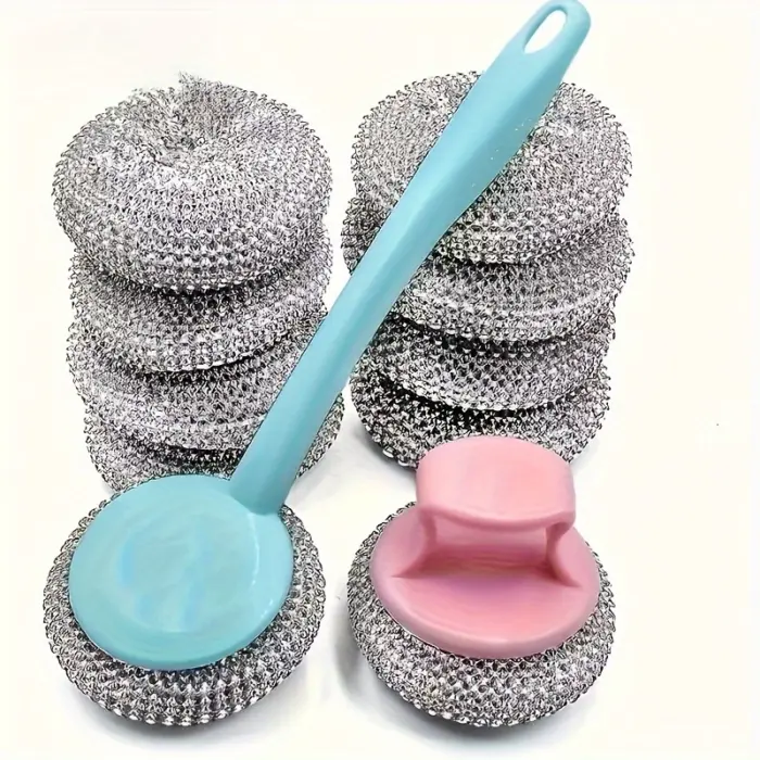 10pcs Detachable Non-Scratch Pan Scrubber for Pot & Pan Cleaning with Handle