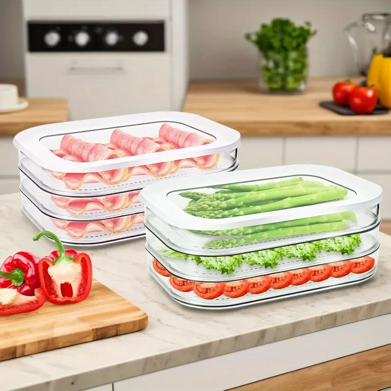3-Layer Stackable Meat Storage Container for Refrigerated Food Organization, Easy-Access Design
