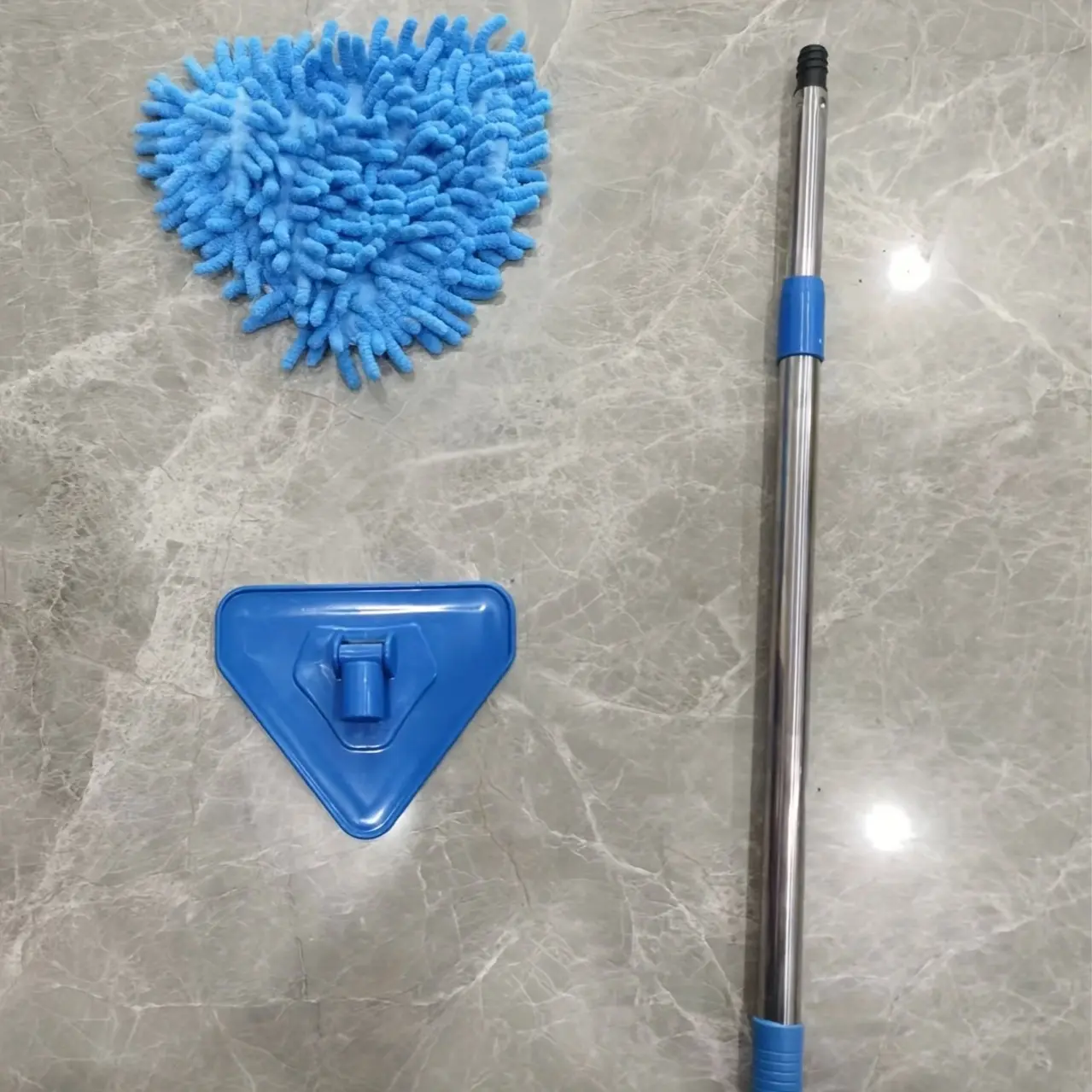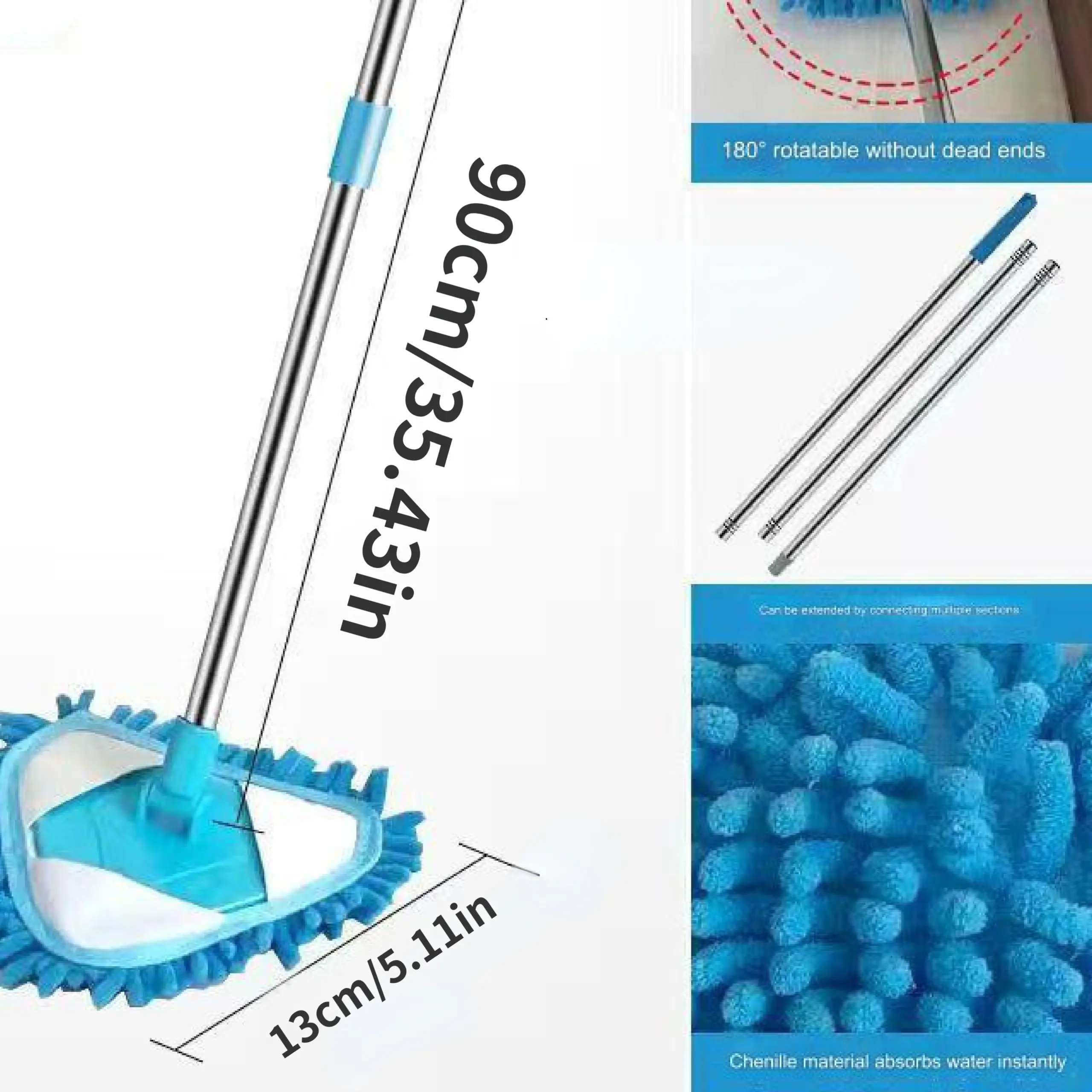 This triangle mop is designed for wet and dry cleaning on flat surfaces. The 360° rotary head helps you change direction easily while wiping. An adjustable retractable handle supports different working heights and reach. The triangular head shape is made to help access corners and edges during routine cleaning.