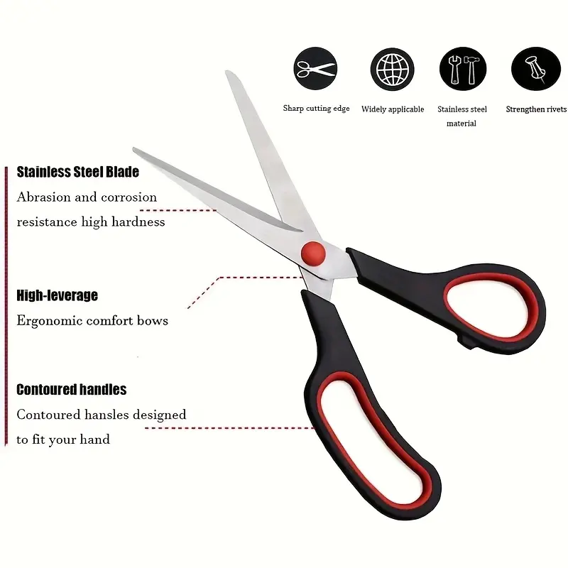 This stainless steel scissors set is designed for everyday cutting tasks in home, office, or general utility use. The blades are made to support controlled cutting with a stable pivot structure. A comfortable grip handle design helps support right- or left-hand use. Suitable for paper, packaging, and other common materials where a clean cut is needed.