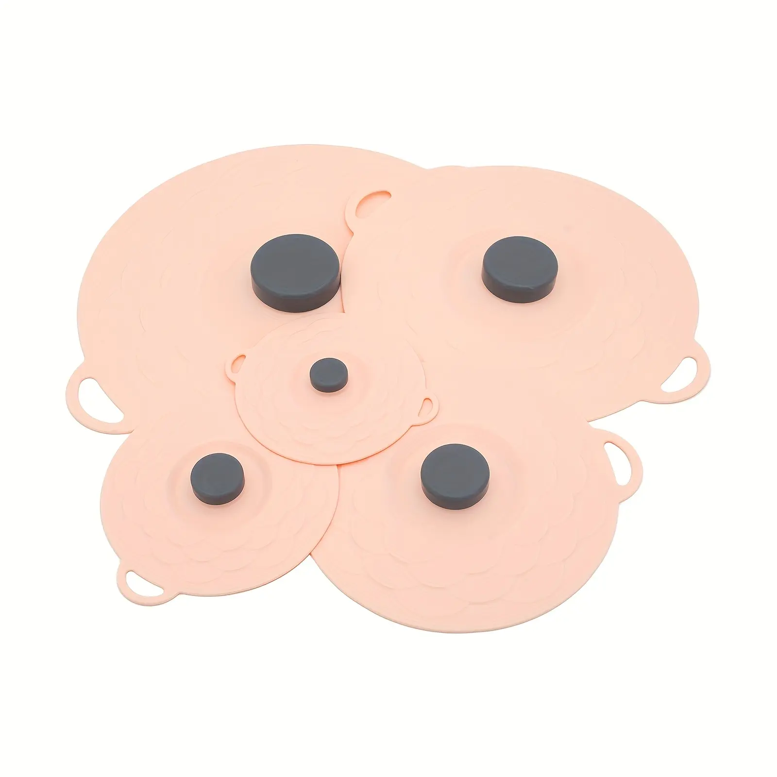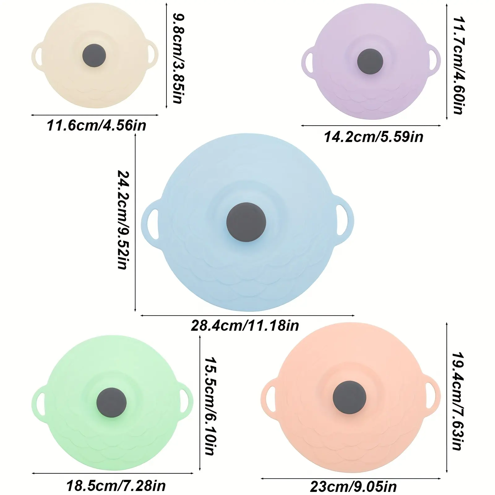 5-Piece Silicone Pot Lid Covers for Covering Bowls, Pots and Jars, Microwave-Safe Design