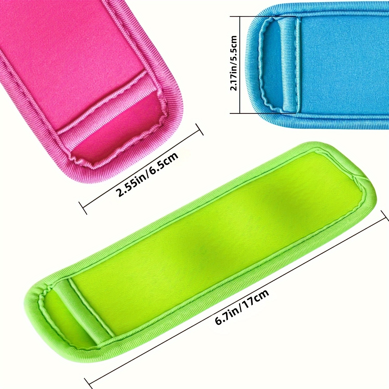 These ice pop sleeves are designed to help provide a more comfortable grip when holding frozen treats. The neoprene-style insulating material helps reduce cold transfer to hands during use. A flexible sleeve shape is intended to fit around many standard ice pop sizes. The reusable design can be rinsed or washed between uses for simple upkeep.