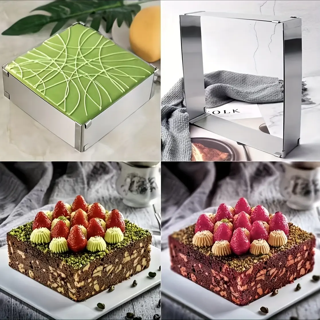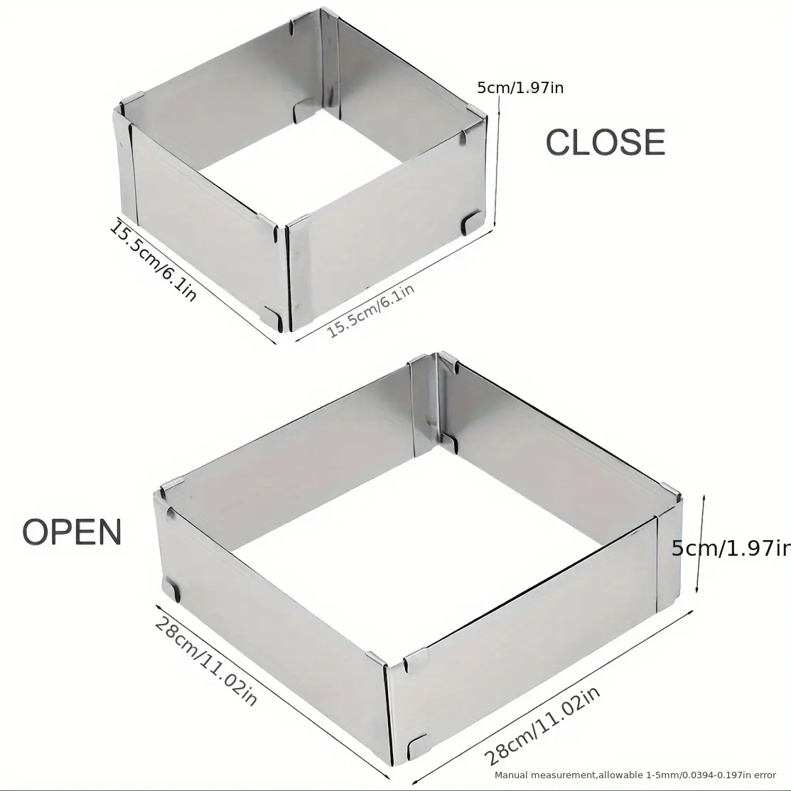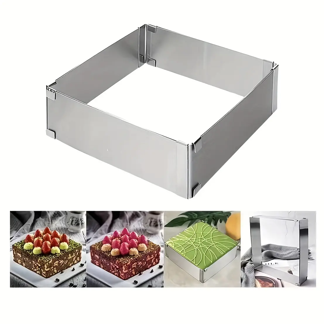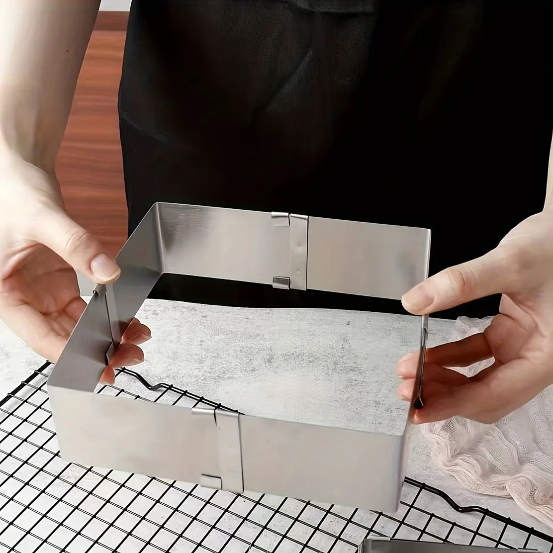 Adjustable Stainless Steel Square Cake Mold Ring for Shaping & Baking with Baking Knife