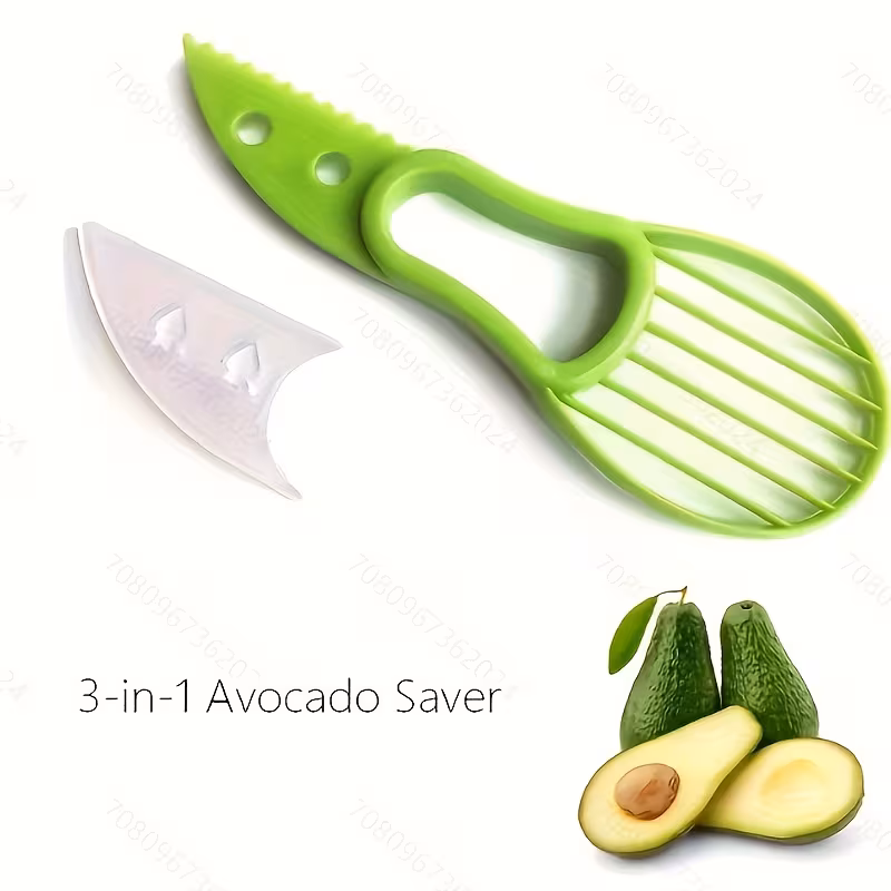 This avocado slicer and pitter is designed to assist with separating flesh and removing the core through manual operation. The integrated tool form supports multiple preparation steps without mechanical components. Its plastic construction allows controlled handling during routine food preparation. The shape is intended for direct use on halved fruit. This kitchen tool is suitable for everyday home cooking tasks.