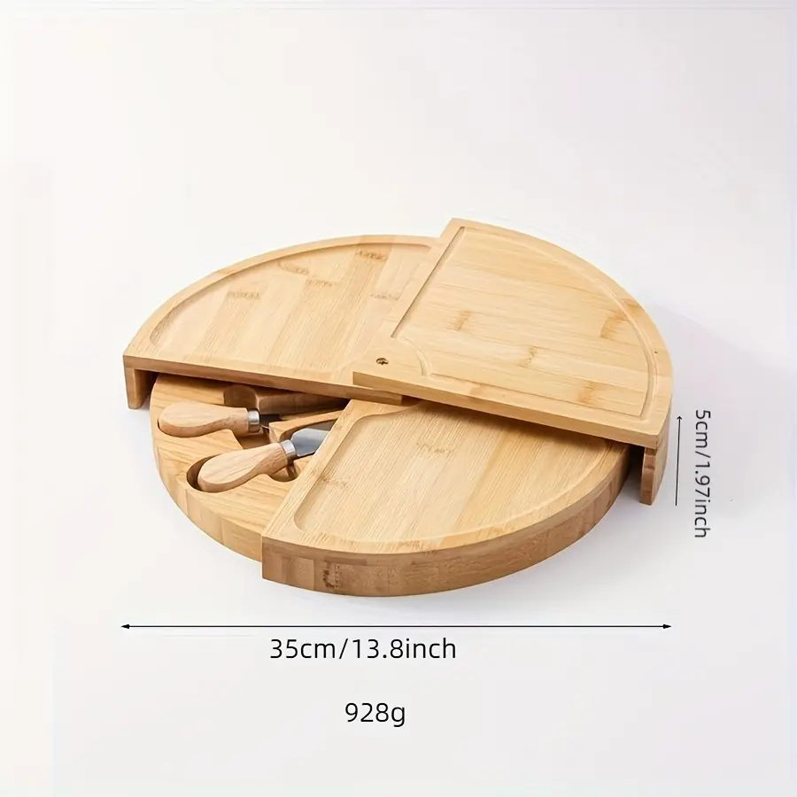 Bamboo Cheese Knife and Serving Tray Set for Slicing & Serving