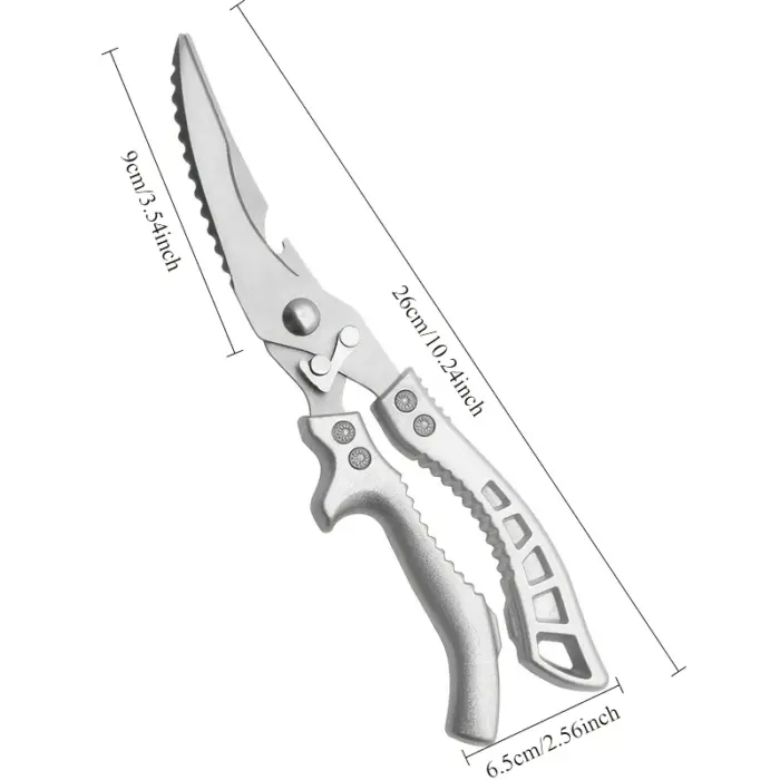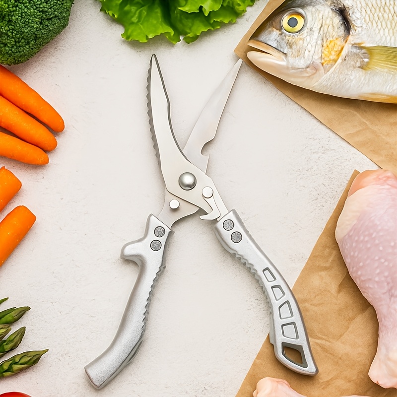 These kitchen scissors are designed for cutting and trimming a range of food ingredients during meal prep. The carbon steel construction supports controlled cutting with a rigid blade structure. An ergonomic grip is shaped for steady handling in either hand. Use and care according to the material and finish to help maintain cutting performance over time.