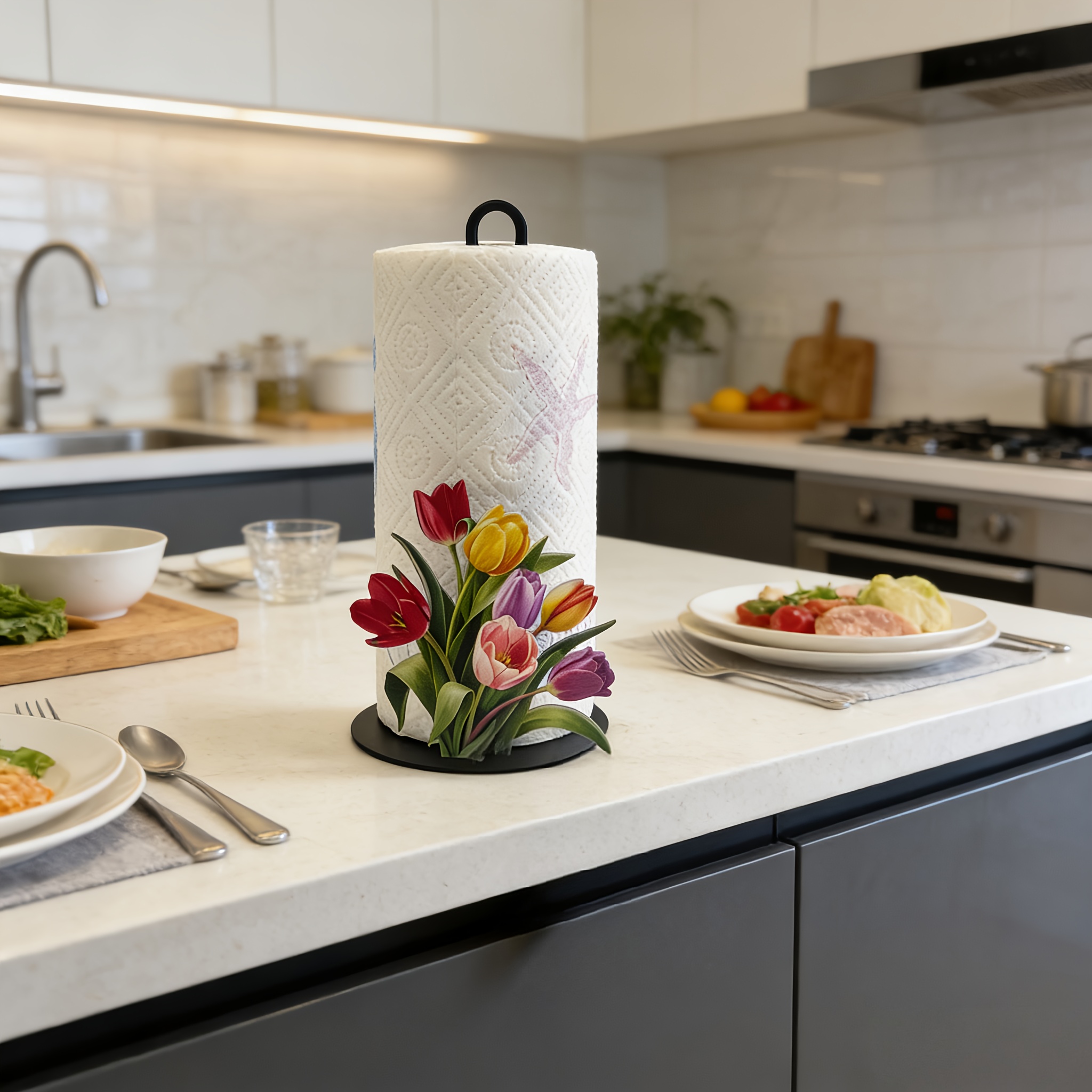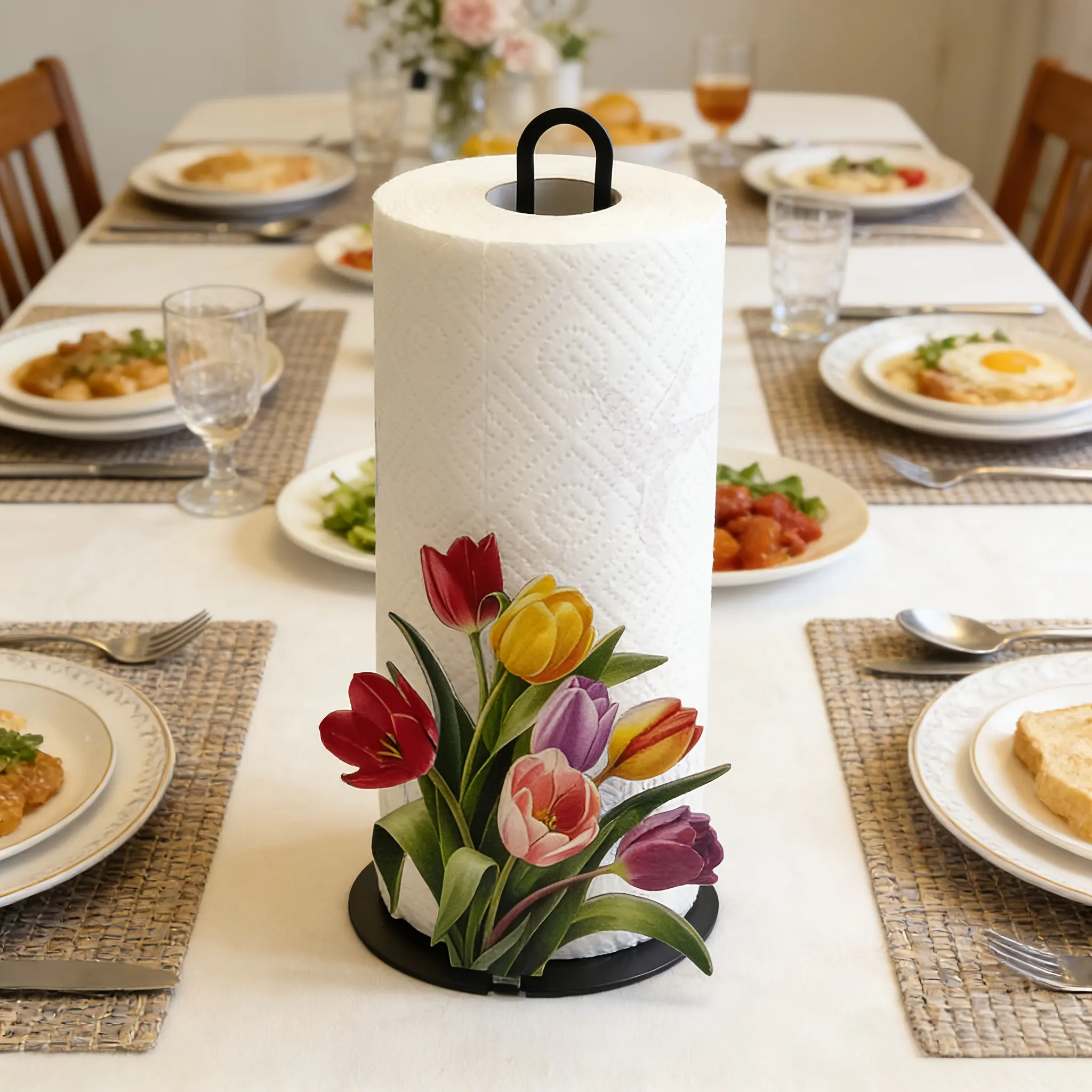 Cast Iron Tulip Tissue Holder for Holding Standard Tissue Rolls and Sheets