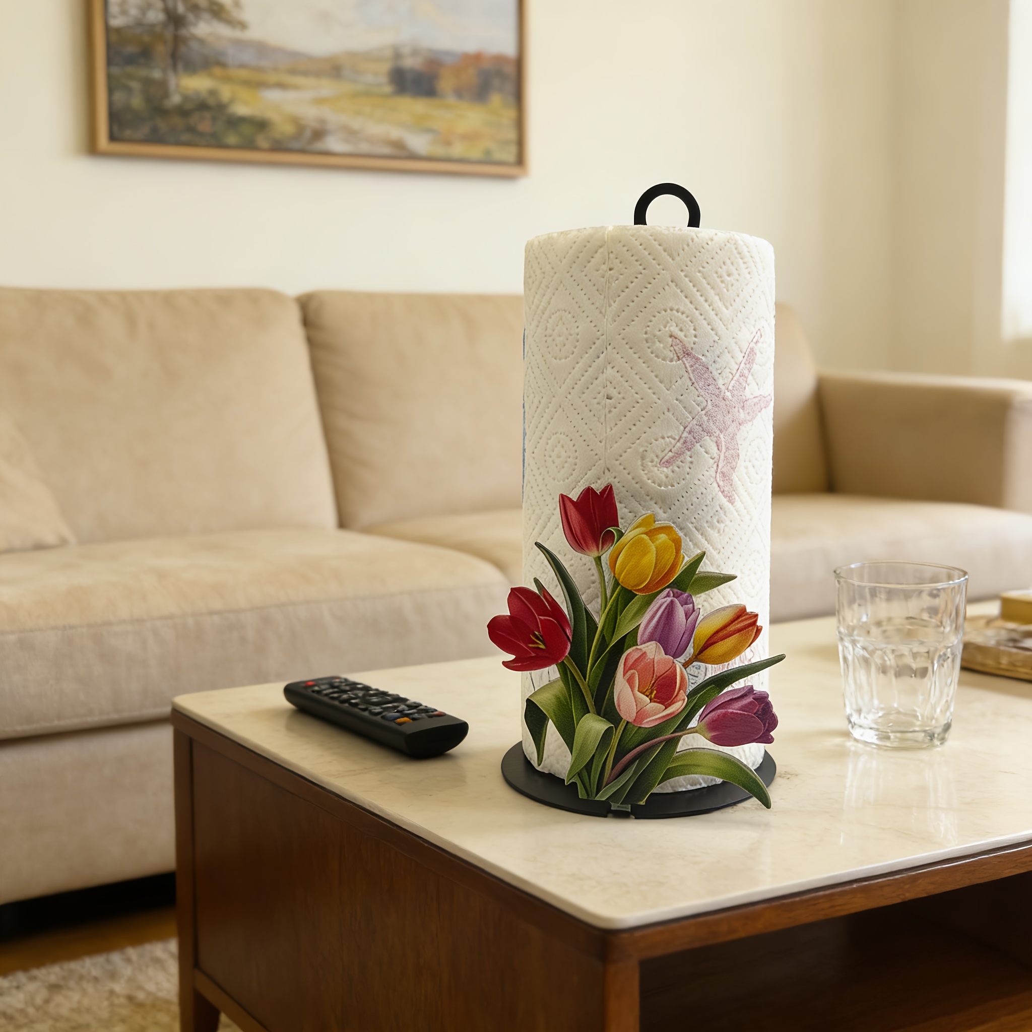 This cast iron tissue holder is designed to keep tissues organized and easy to access. The freestanding construction supports stable placement during everyday use. Its tulip-shaped form provides a decorative way to store a standard tissue roll or folded tissues. The surface-mount design is intended for simple setup without drilling.