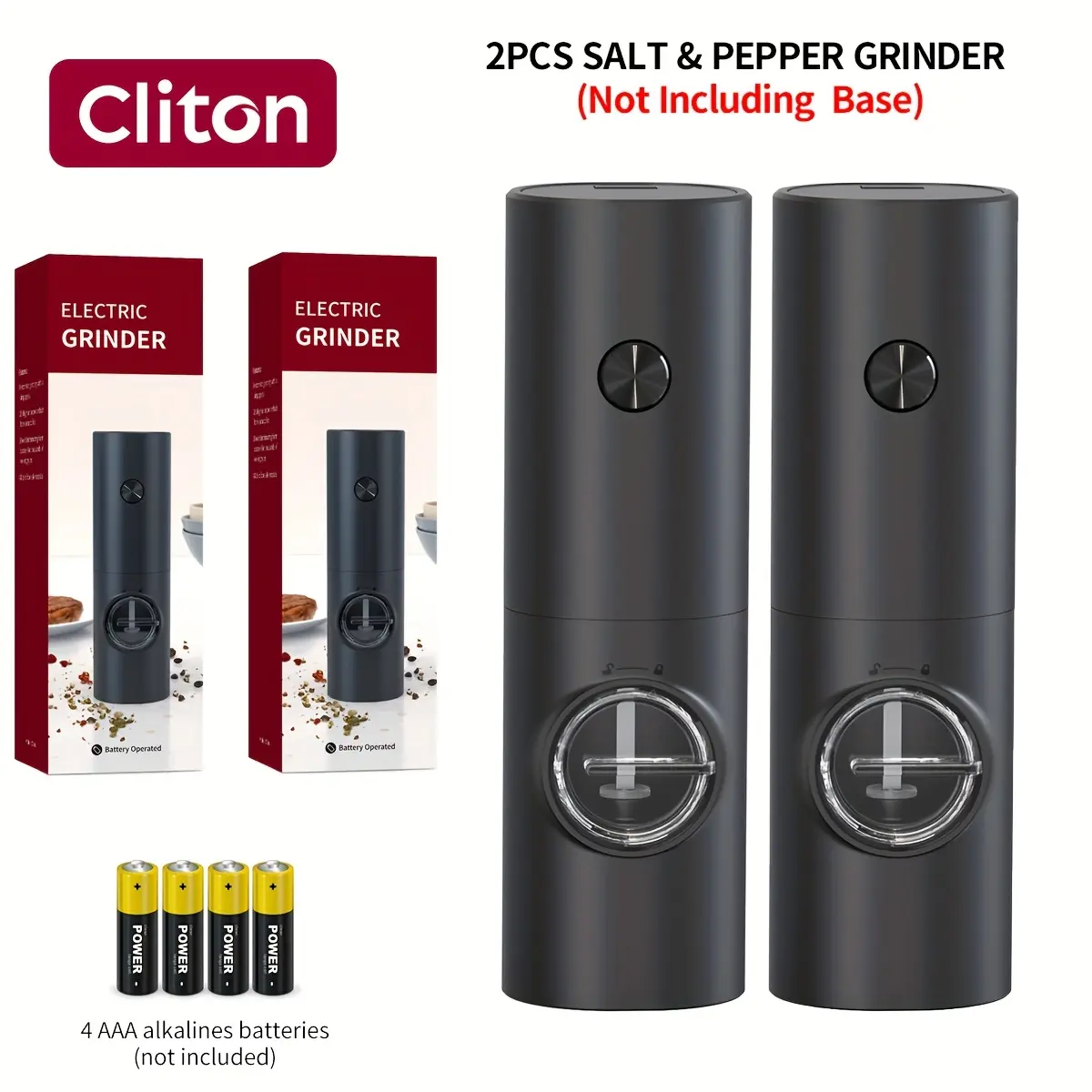 This electric salt and pepper grinder is designed for dispensing and grinding dry seasonings with one-hand operation. The dual-compartment body keeps two seasonings separated while using a single handheld unit. An adjustable coarseness control helps you change the grind texture based on preference. A built-in LED light supports visibility during dispensing. The included base provides a dedicated place to store the grinder between uses.
