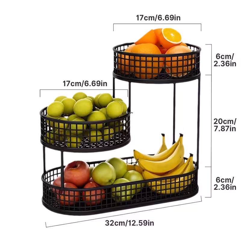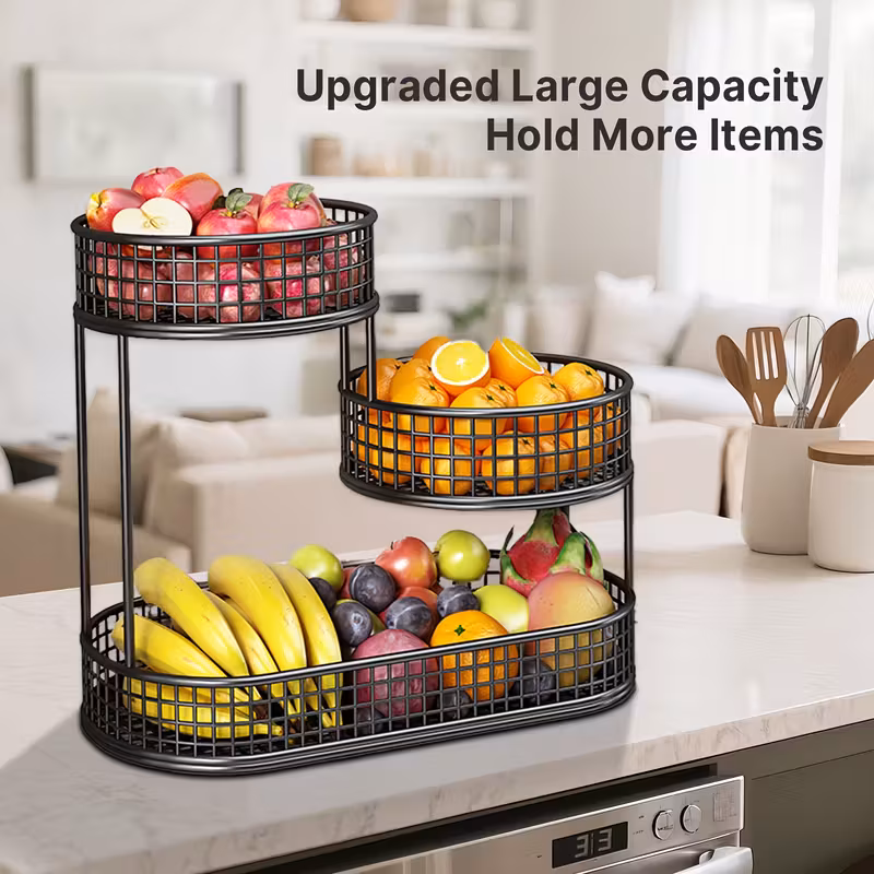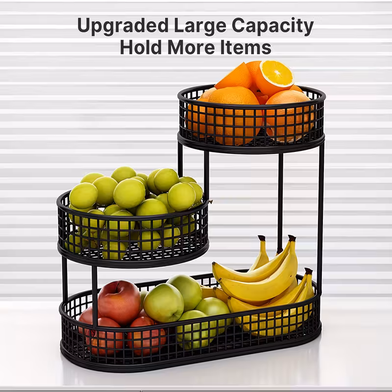 Elevate your home decor and organization with this elegant multi-tier metal fruit basket. Its sophisticated design combines functionality with modern aesthetics, making it the ideal centerpiece for your living room or kitchen. Crafted with attention to detail, this versatile piece is perfect for displaying fruits, snacks, or decorative items while saving valuable counter space.