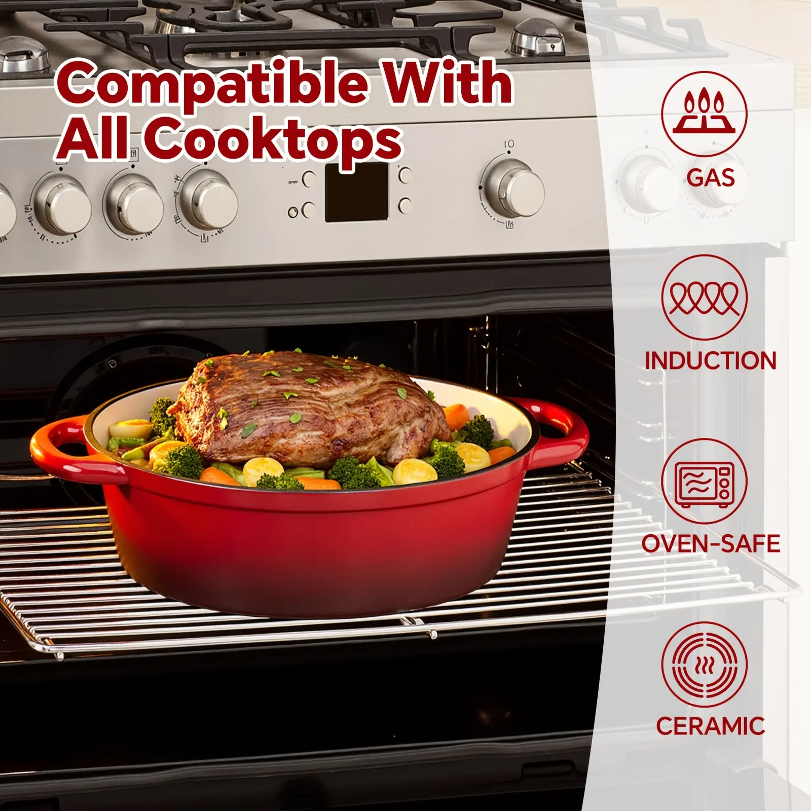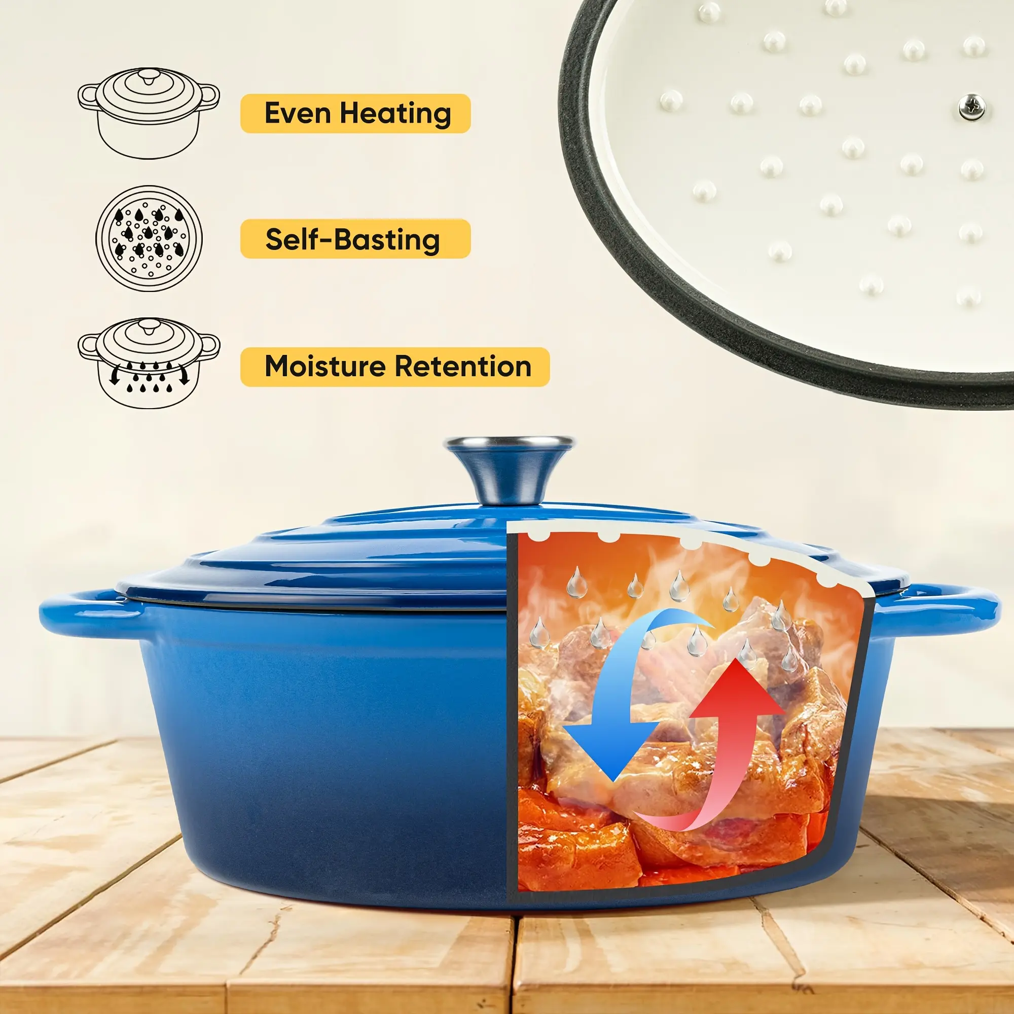 Enameled Cast Iron Dutch Oven Pot with Lid for Bread Baking & Cooking, Dual Handles