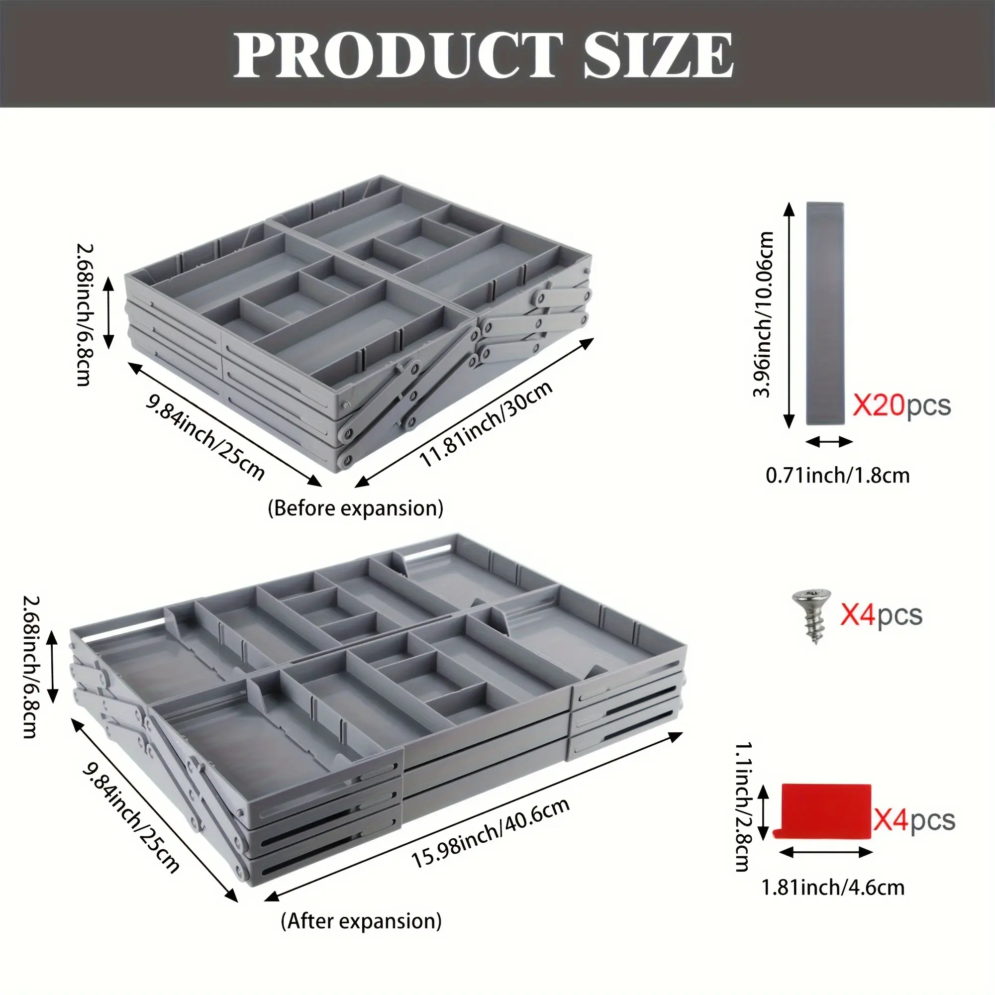 - Stackable or Modular Design: The expandable structure adjusts horizontally to change the internal layout as needed.