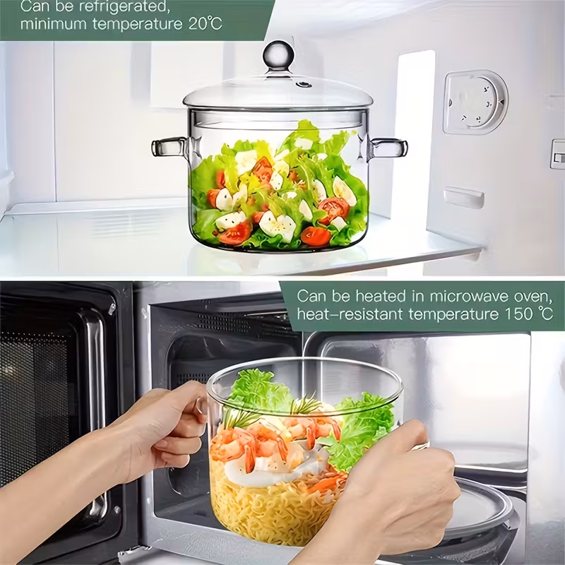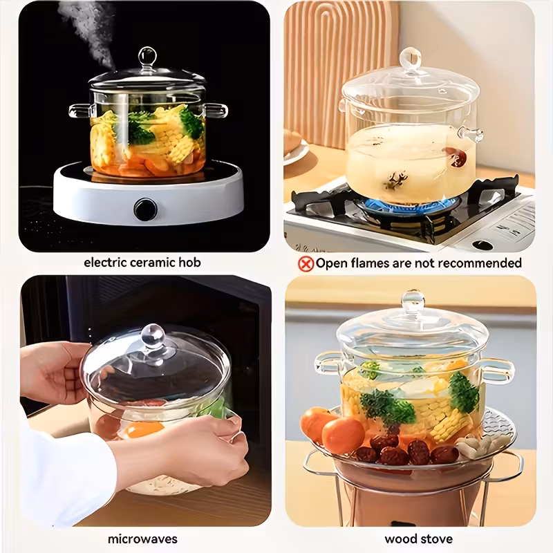 Experience the joy of cooking with this elegant heat-resistant glass simmer pot, designed to bring both style and function to your kitchen. Its transparent design lets you monitor your dishes effortlessly, making it perfect for simmering, boiling, and preparing your favorite meals with confidence.