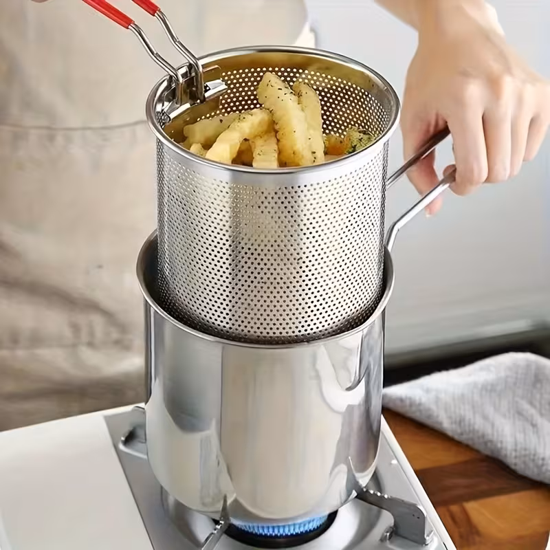 - Stainless Steel Construction: Made from metal suitable for repeated frying tasks.