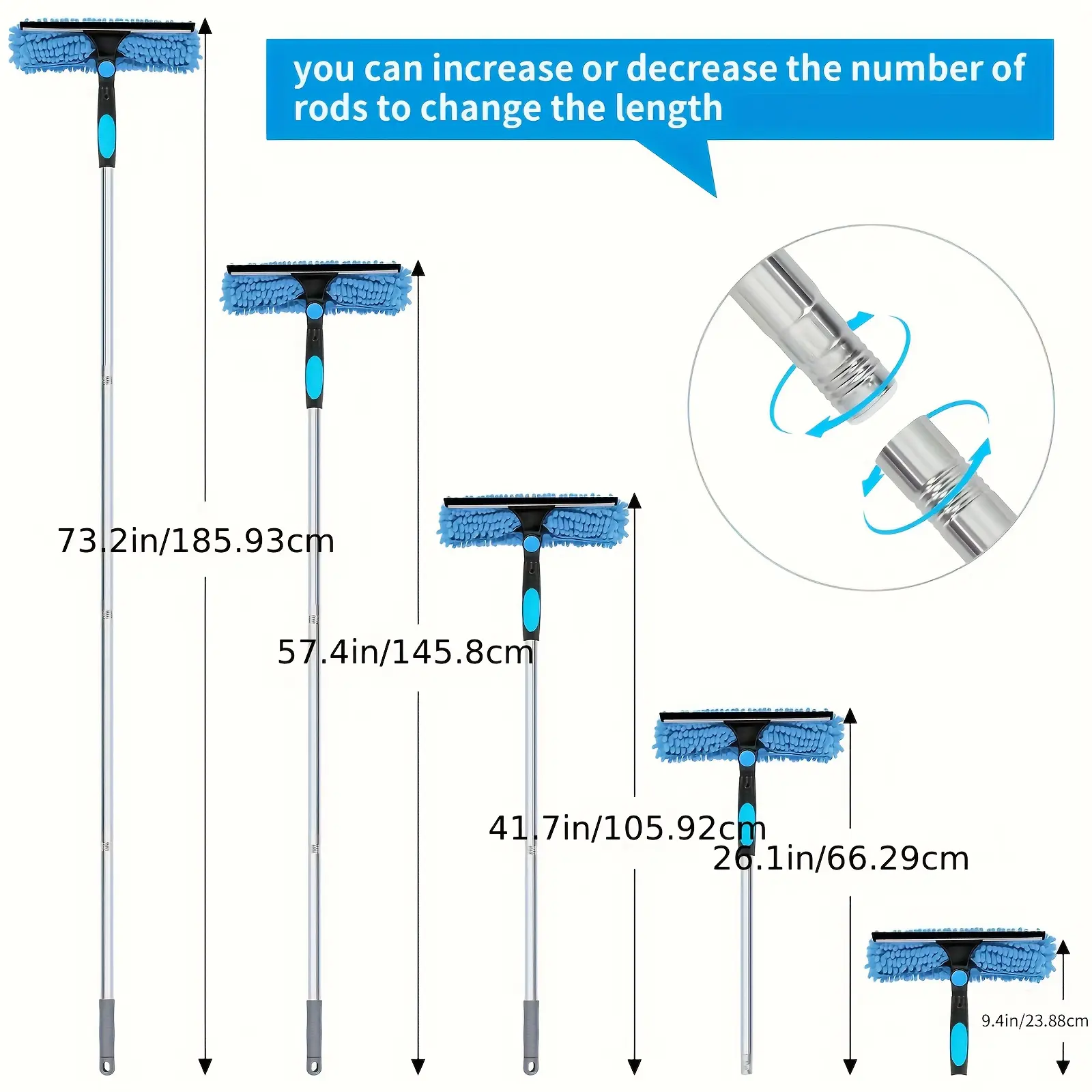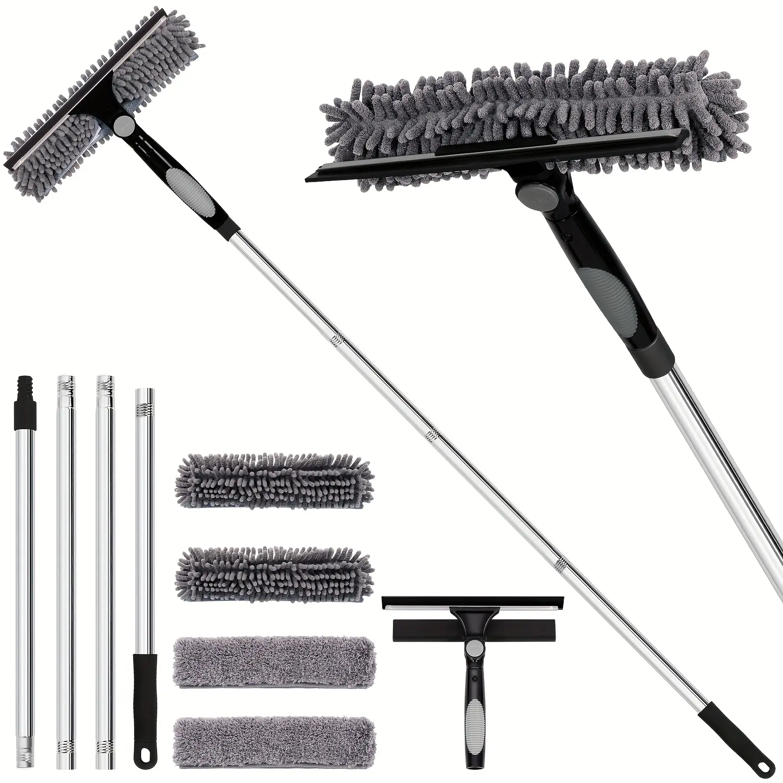 This high window cleaning squeegee is designed for cleaning and wiping smooth glass surfaces with controlled reach. The extension pole helps extend working distance for higher areas without changing tools. A rotating head supports angle adjustment for more flexible handling during wiping. The 2-in-1 format combines a squeegee edge with a scrubber-style cleaning side for wet cleaning and finishing.