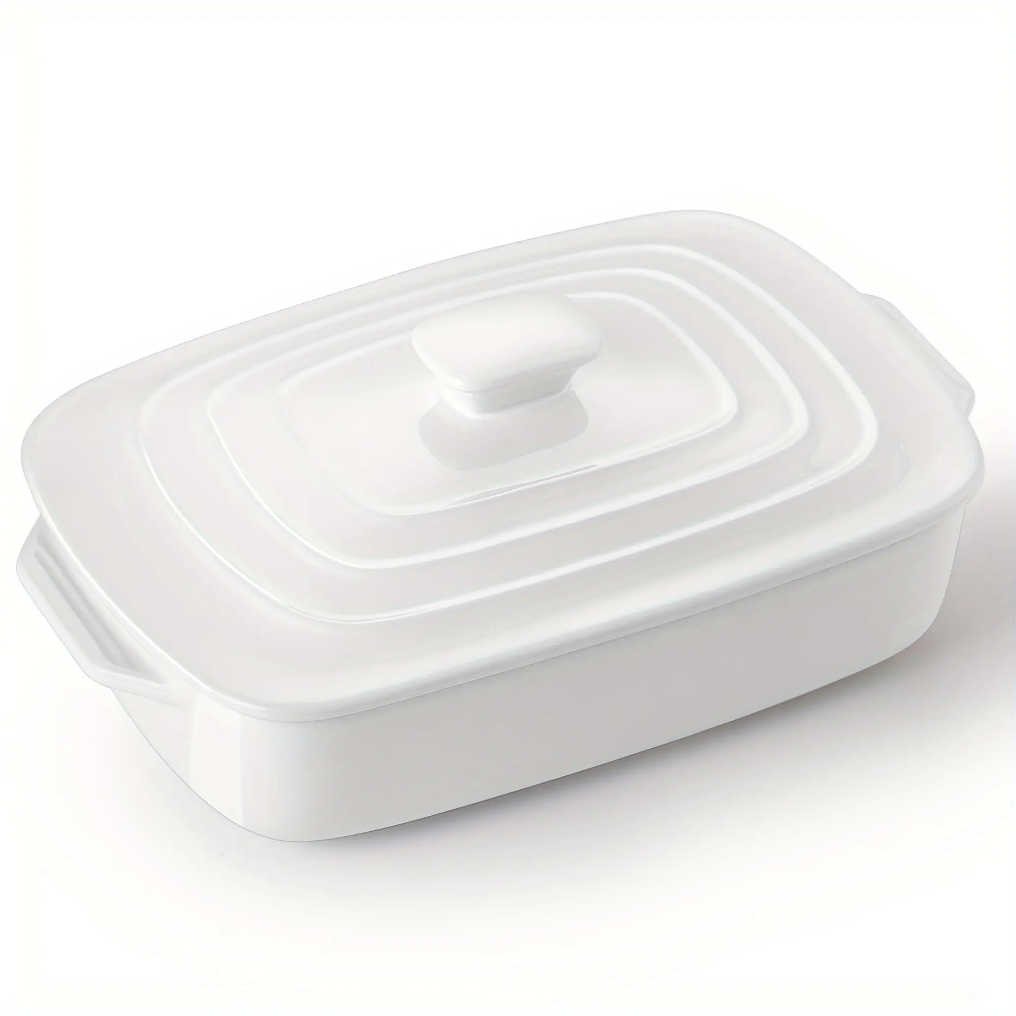 Large Ceramic Casserole Dish with Lid for Baking & Serving, Rectangular Deep Design