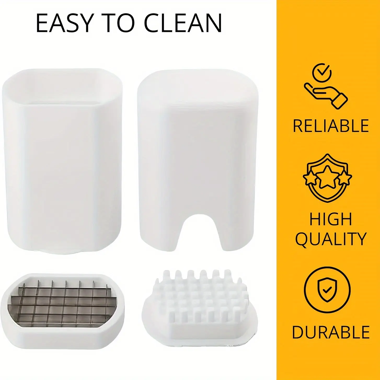This manual cutter and chopper is designed for slicing and dicing firm vegetables into consistent pieces. The metal cutting grid supports controlled, repeatable cuts with hand-operated pressure. An integrated pusher helps guide ingredients through the cutting area for more even results. The parts are designed to be rinsed and cleaned after use.