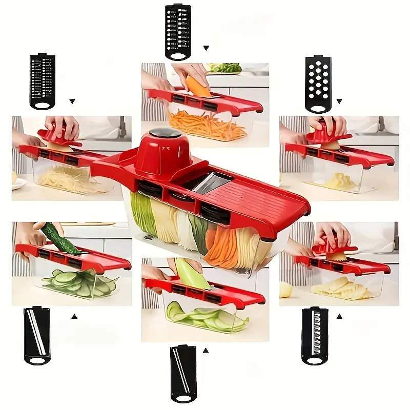 • Manual Operation Mechanism: Designed for hand-powered slicing, chopping, and grating without electrical components.