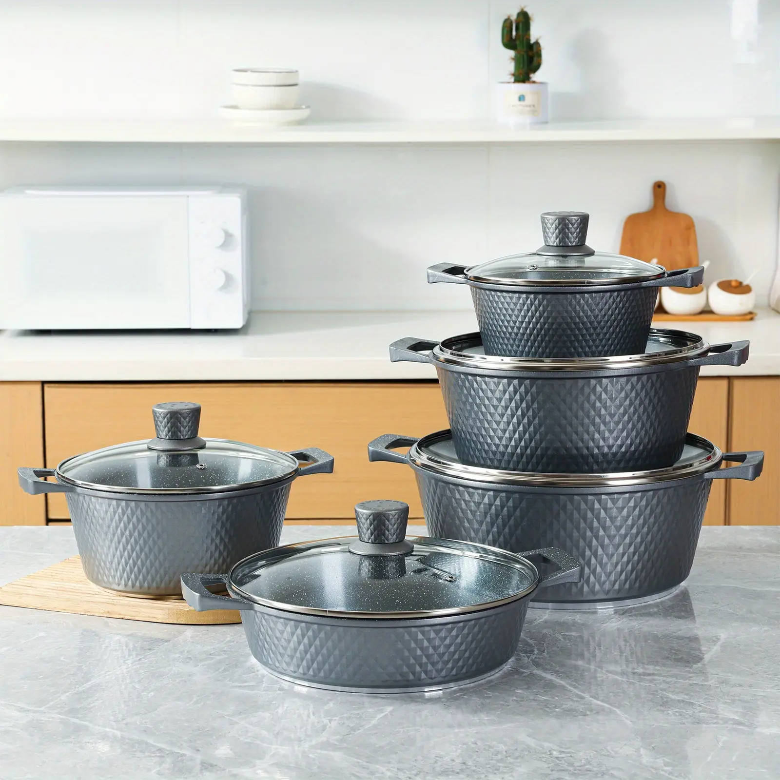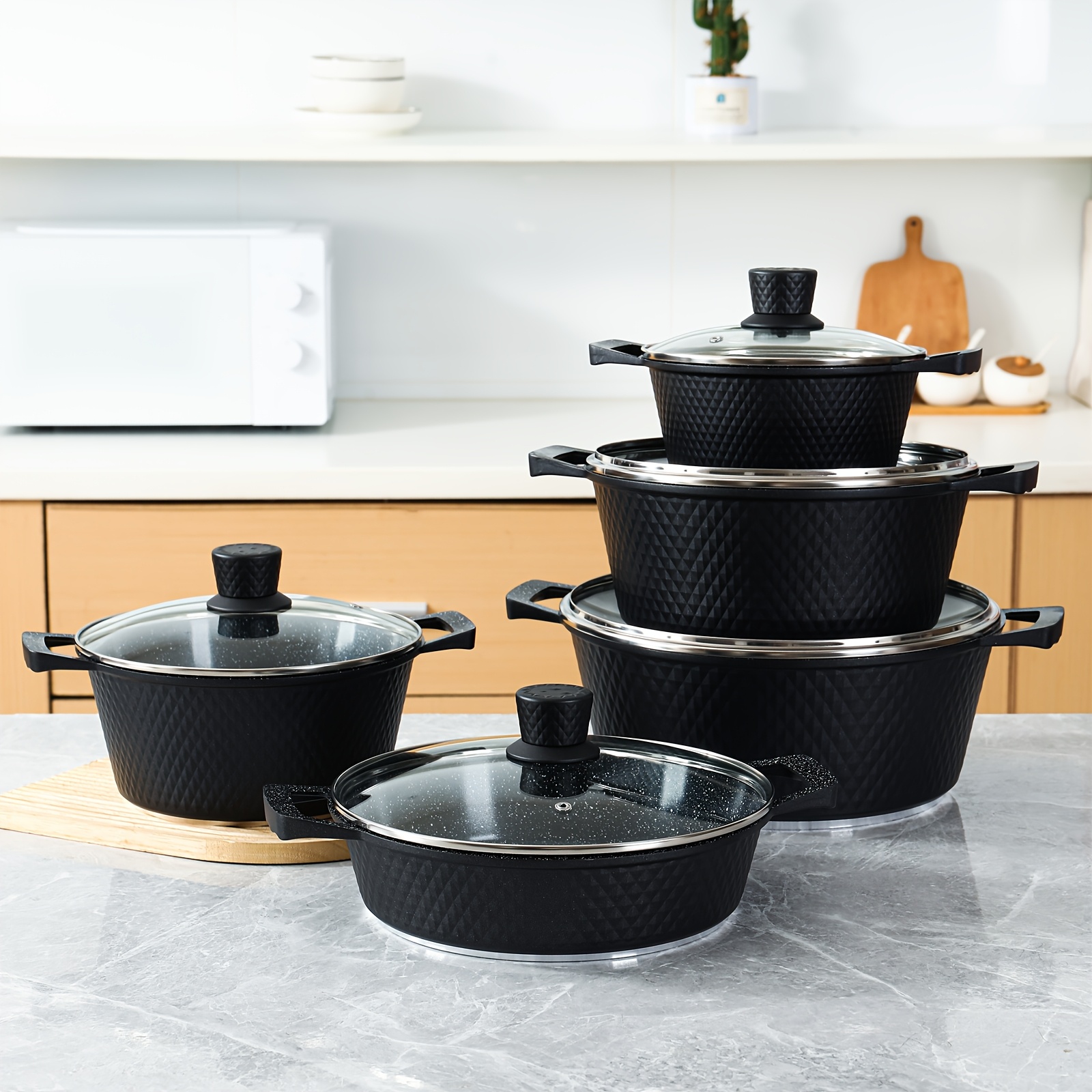 This multi-piece soup pot system is designed for stovetop cooking tasks such as simmering and boiling. The aluminum construction supports even heat interaction during everyday cooking. A non-stick style coating helps reduce sticking during cooking and cleanup. The included components are intended to be used together as a coordinated cookware setup.