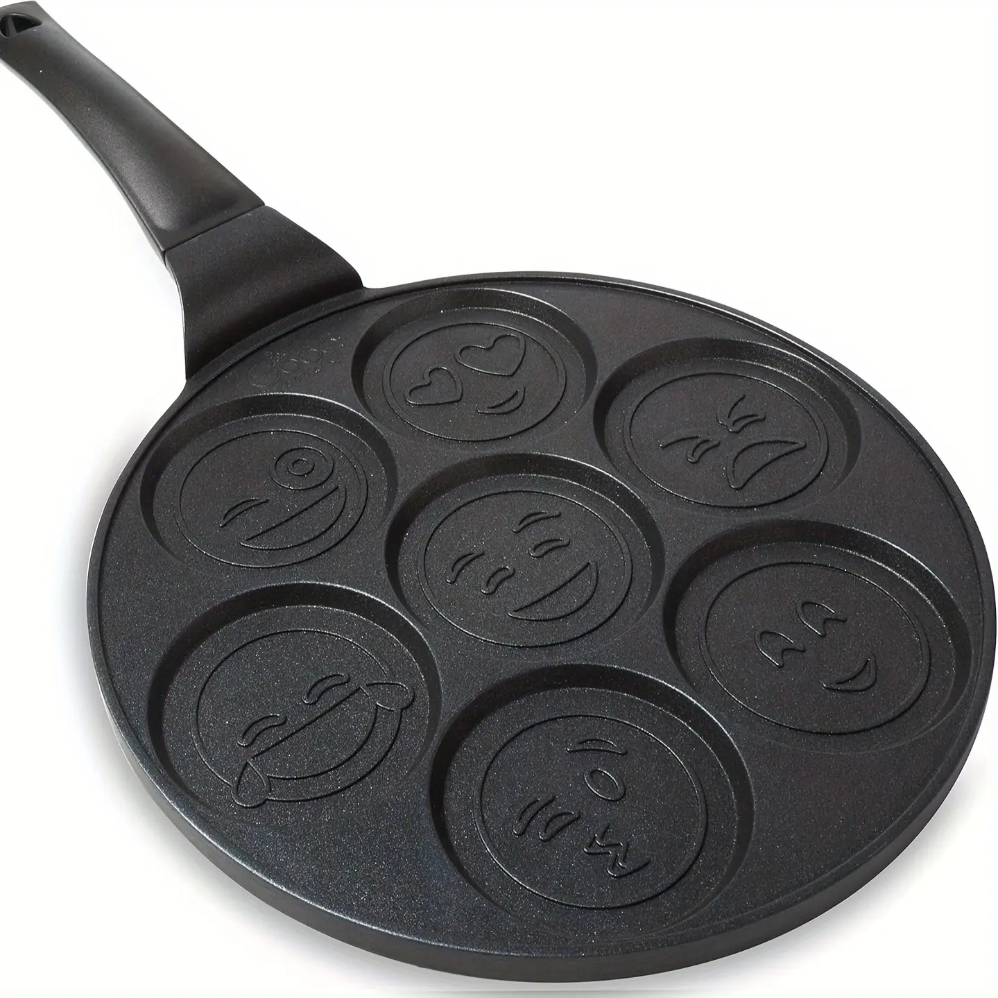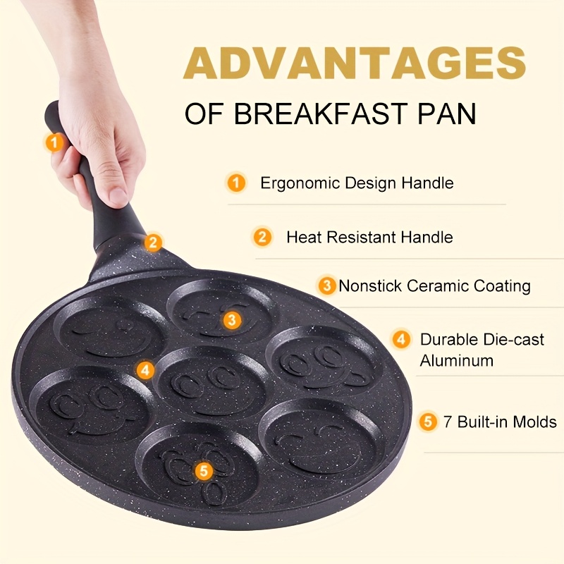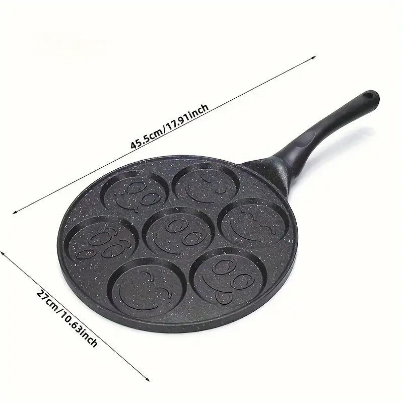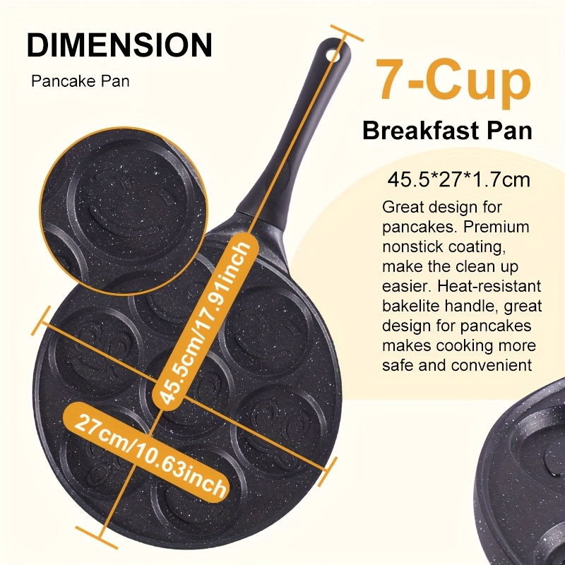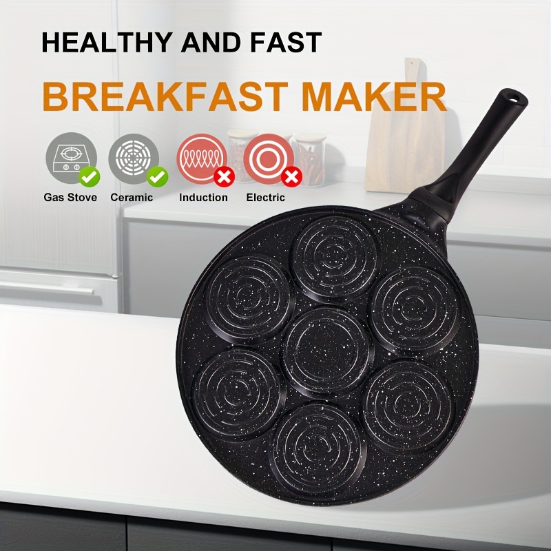 Non-Stick 7-Hole Pancake and Crepe Pan for Stovetop Cooking with Detachable Handle