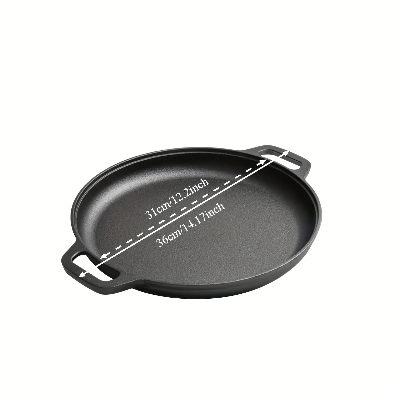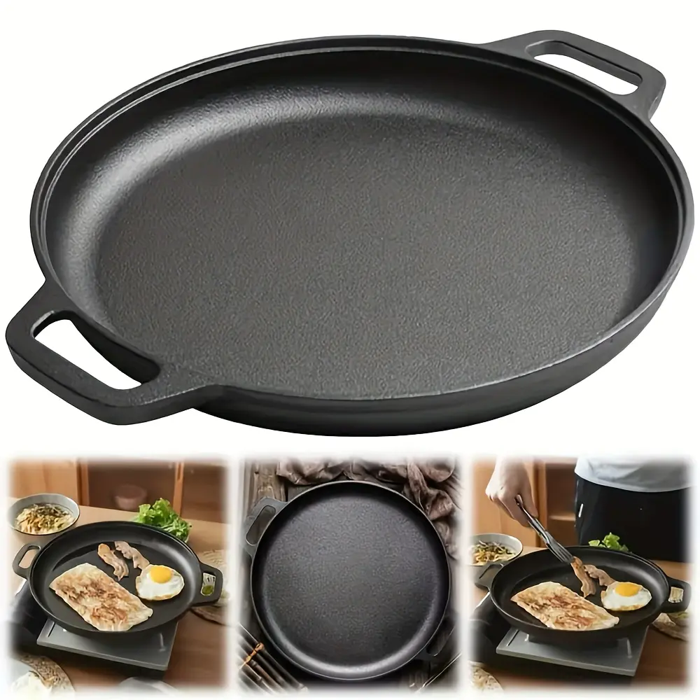 This pre-seasoned cast iron pan is designed for stovetop cooking, searing, and general pan-frying tasks. The cast iron construction supports steady heat distribution during cooking. A pre-seasoned surface helps reduce sticking and supports easier food release with proper care. The pan is suitable for routine kitchen use and can be maintained with standard cast iron cleaning and drying practices.