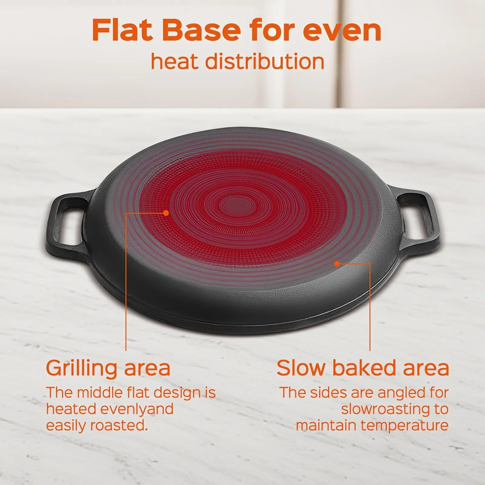 • Heat Interaction Support: Cast iron construction supports steady heat distribution during cooking.