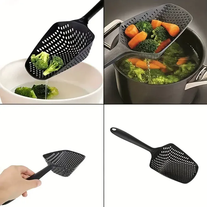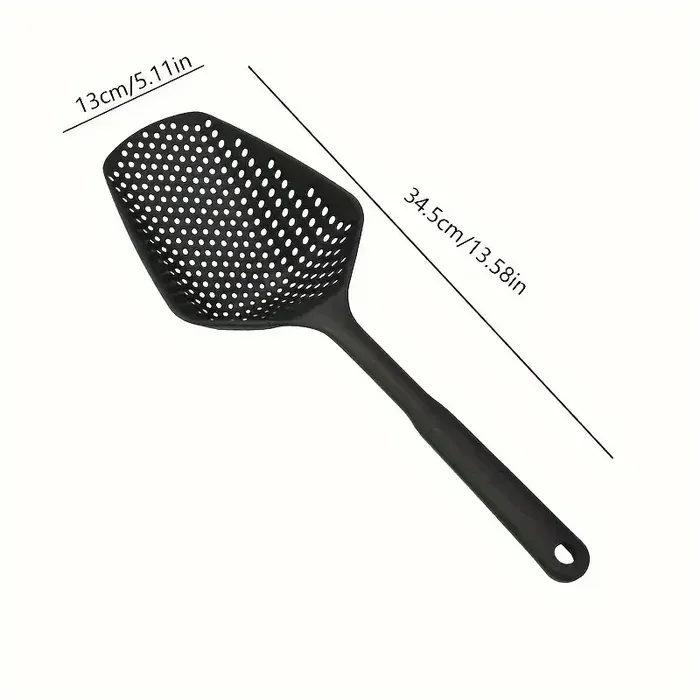 Experience effortless cooking and draining with this versatile kitchen strainer spoon. Crafted from durable plastic, this all-in-one tool combines the convenience of a spoon with the functionality of a strainer, making it an essential addition for any home chef. Its thoughtful design ensures smooth food preparation without the need for electricity or additional gadgets.