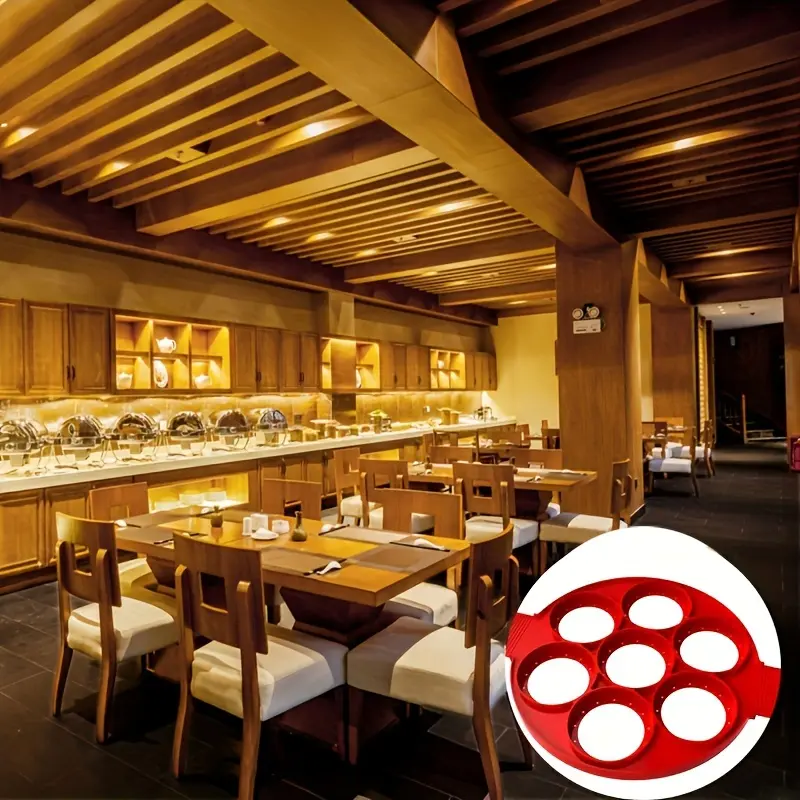 Create perfectly shaped, uniform pancakes and eggs every time with this versatile 7-hole silicone mold. Ideal for home chefs and professional kitchens alike, this tool ensures effortless food preparation with consistent results.