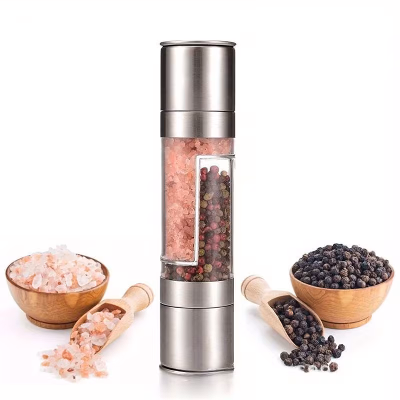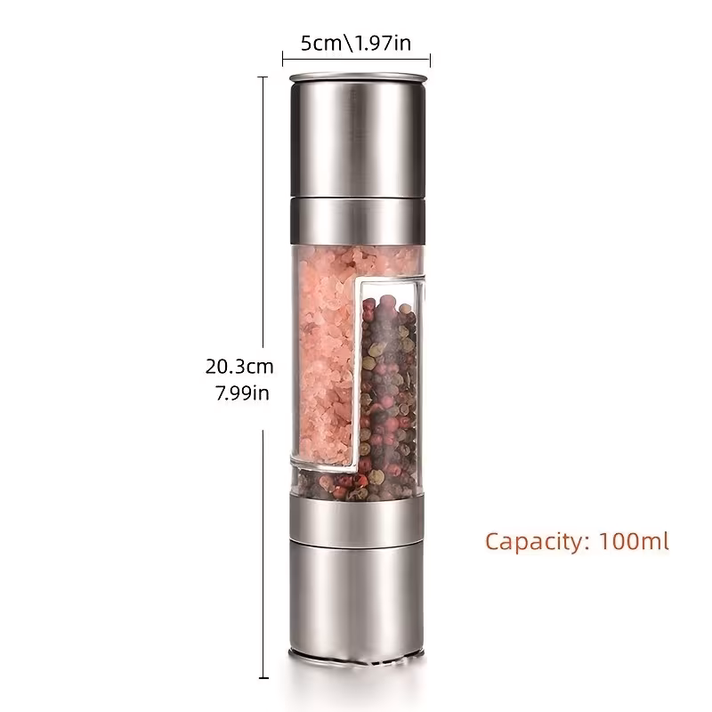 Stainless Steel Pepper and Sea Salt Grinder with Dual-Function Design
