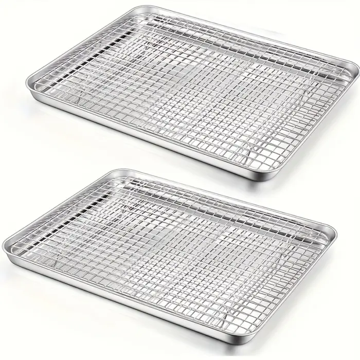 Stainless Steel Baking Pan with Cooling Rack for Baking & Roasting, Extra Thick Edge – description image 1