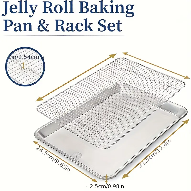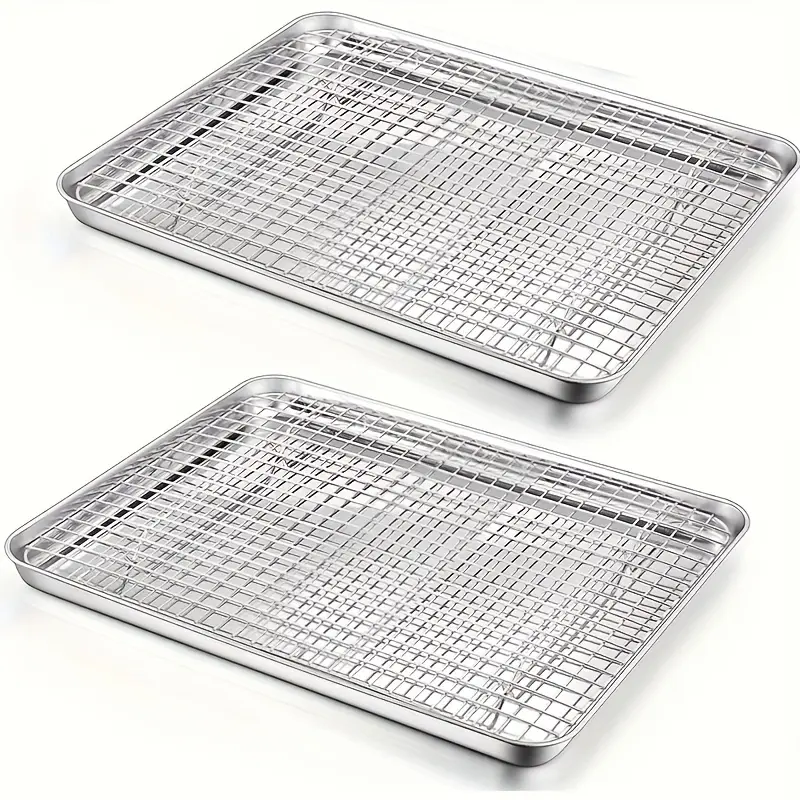 Stainless Steel Baking Pan with Cooling Rack for Baking & Roasting, Extra Thick Edge