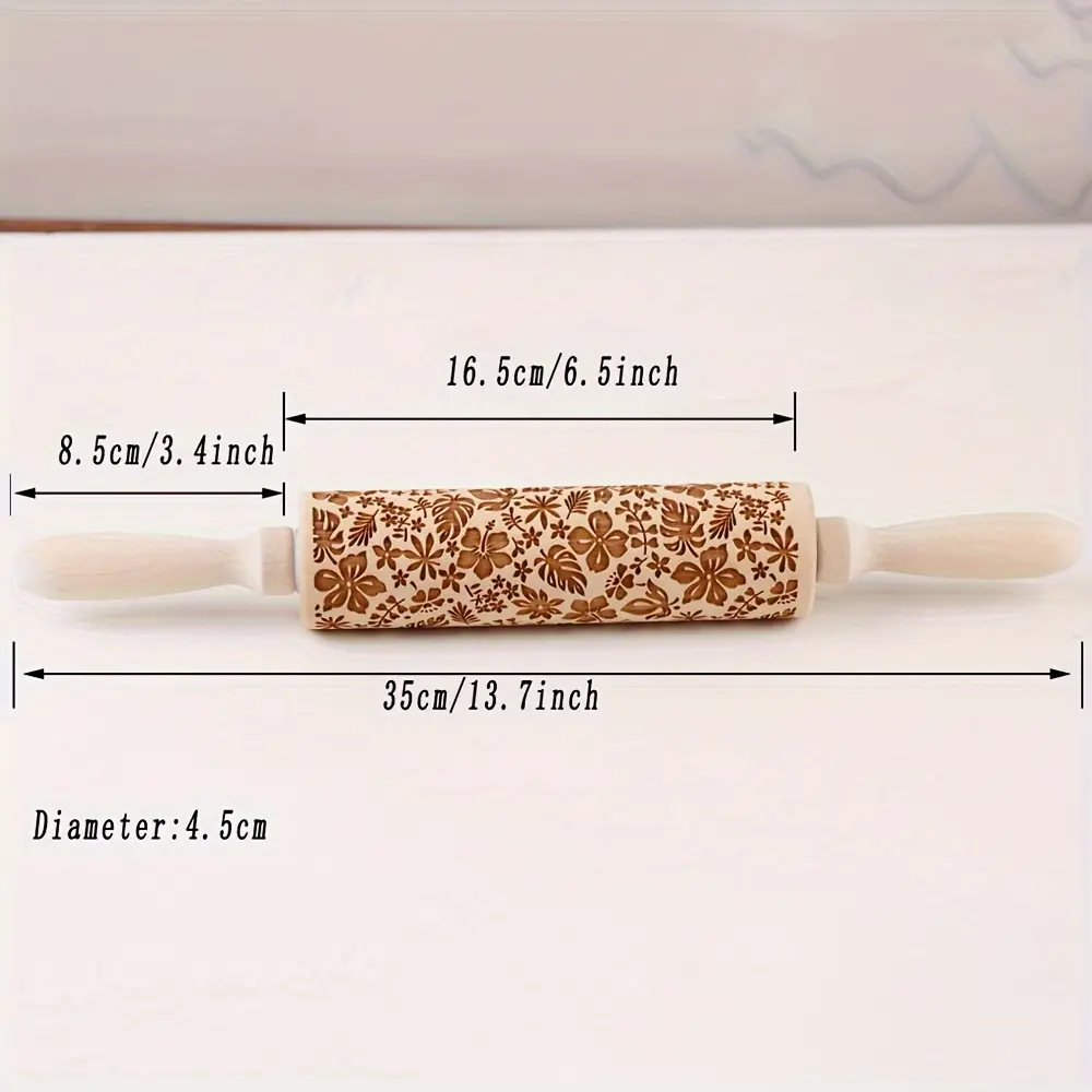 Wooden Embossing Rolling Pin for Rolling & Texturing Dough, Floral Pattern – description image 1